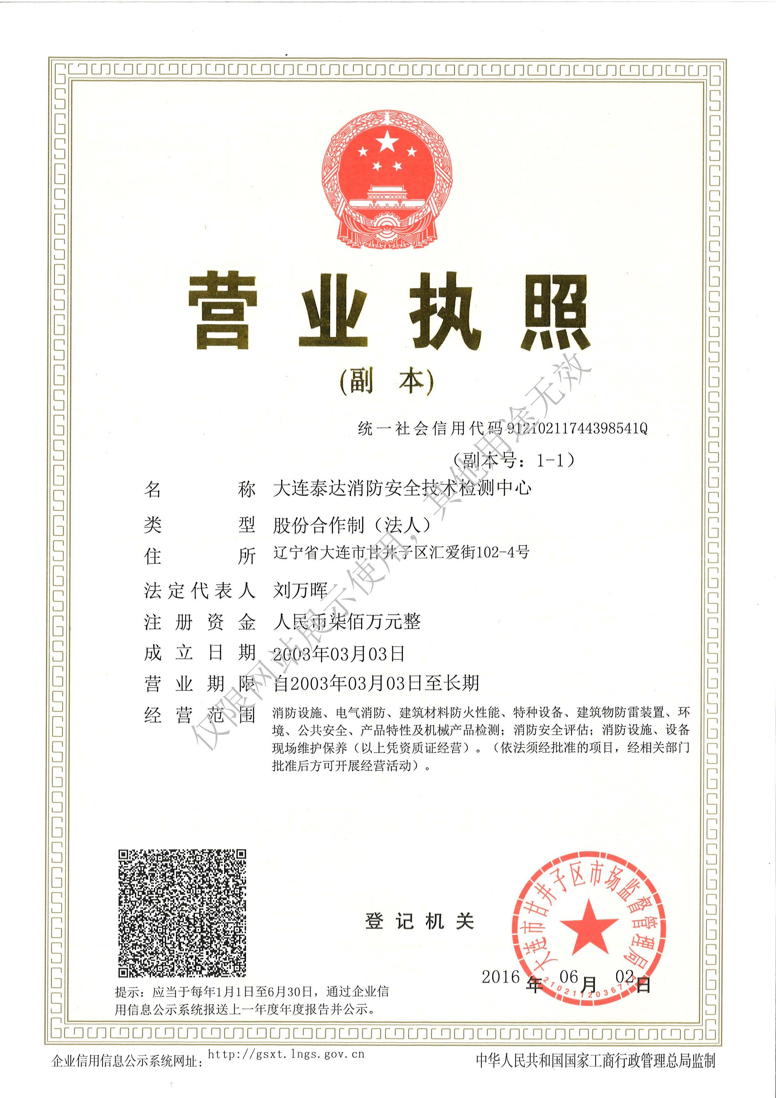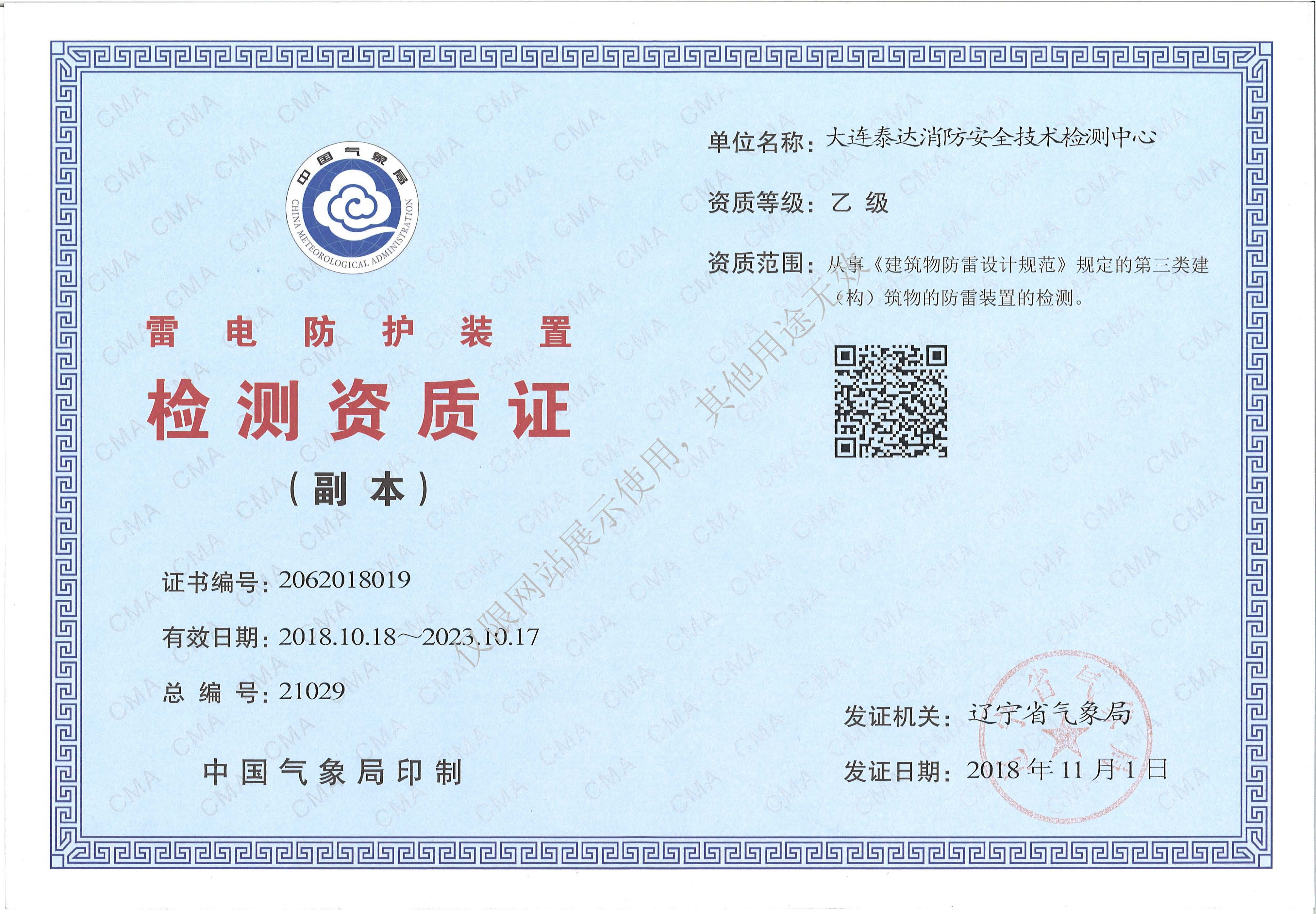 · 是經(jīng)“社會消防技術(shù)服務(wù)信息系統(tǒng)”備案并公示的消防技術(shù)服務(wù)機構(gòu),已取得中國氣象局頒發(fā)的雷電防護裝置檢測資質(zhì)證書、遼寧省質(zhì)量技術(shù)監(jiān)督局審核批準的檢驗檢測機構(gòu)資質(zhì)認定證書(CMA)及包括消防檢測、電氣檢測、雷電防護裝置檢測、防火涂層厚度檢測等在內(nèi)的200余項檢驗檢測能力,取得大連市應(yīng)急管理局頒發(fā)的安全生產(chǎn)標準化證書,獲得質(zhì)量管理體系、環(huán)境管理體系、職業(yè)健康安全管理體系認證證書,是經(jīng)備案的高新技術(shù)企業(yè),可獨立出具具有證明作用的檢測報告。
